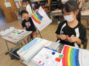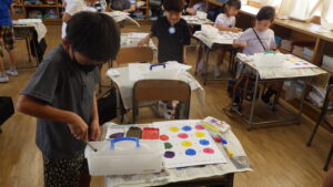 1年生 【1年生】9月も元気に過ごしました☆ 2025.10.03 by kanie001 楽しいことがいっぱいだった9月の様子をお届けします☆ 初めての絵具、初めてのプールでの検定、栄養教諭によるお箸の使い方指導など、盛りだくさんな9月でした。 10月は運動会に向けて、練習をがんばります!
