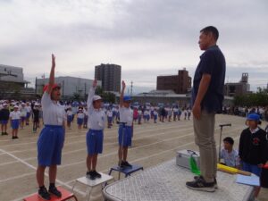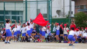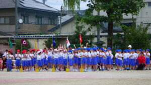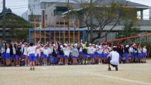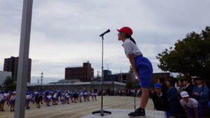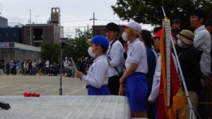 少々肌寒さを感じる朝。本年度の蟹江小学校運動会が開催されました。