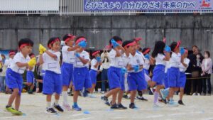 蟹の子会テーマ「とびこえよう 自分がめざす 未来のかべ」のもと、どの学年も一生懸命に演技をおこなっていました。