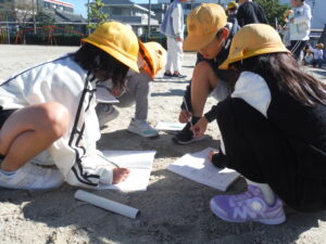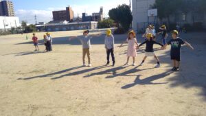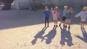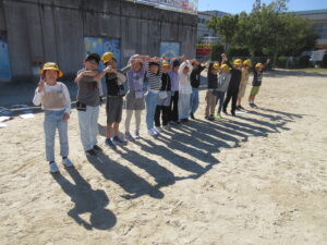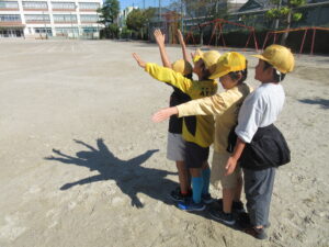 また、国語の授業で出てきた「かげおくり」をしてみたり、かげを使っていろんな形を作ったりして楽しみました。