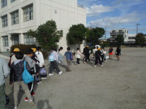 水泳の学習が終わりました。交通安全に気を付けて移動することができました。