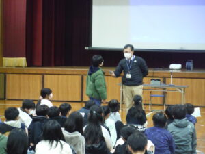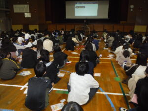 5・6年生に向けて薬物乱用防止教室が開かれました。蟹江ライオンズクラブの方と、蟹江警察署スクールサポーターの方に来ていただき、DVDを視聴し講話を聞きました。