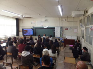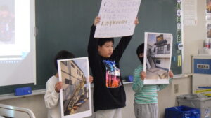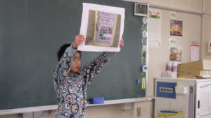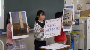緊張しながらも堂々と発表する姿がみられました。災害に備えた準備、