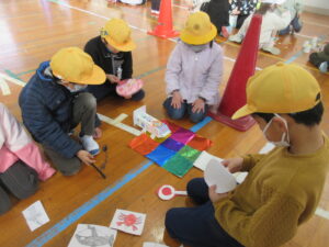 「すごい!」「どうやって作ったの?」と興味津々で、いろいろなおもちゃで遊び、楽しい時間を過ご過ごすことができました。