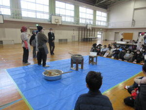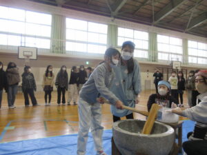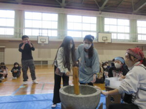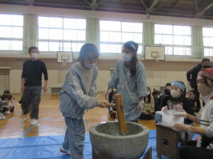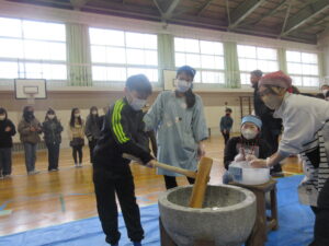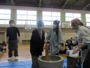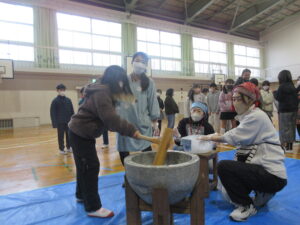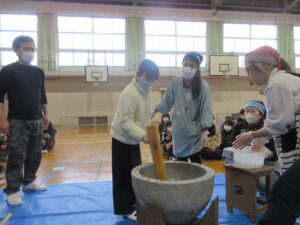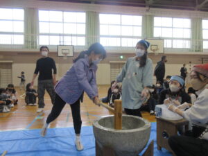 蟹江小学校の伝統あるもちつき会を楽しみました。