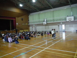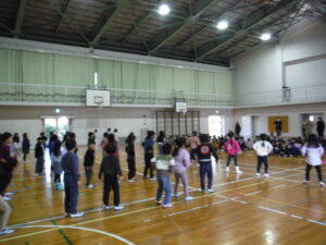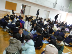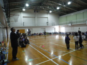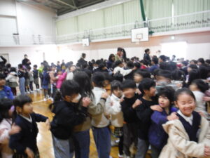 19日(月)に、はばたき幼稚園の年長さんたちに来てもらい、体育館でみんなで遊びました。