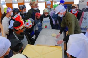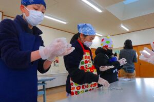 後半は、クラスごとで、おはぎ作りを体験し、みんな一生懸命に、米をあんこで包んでいました。