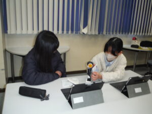 総合では、ロボホンを使い、顔認証のプログラミングに挑戦しました。顔が認証されると嬉しそうな声があがりました。