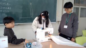 糸通しや、ポケット作りにも初挑戦の子も多く、様々なところで助けていただきました。困ったときにすぐに聞くことができ、子どもたちも嬉しそうにしていました。